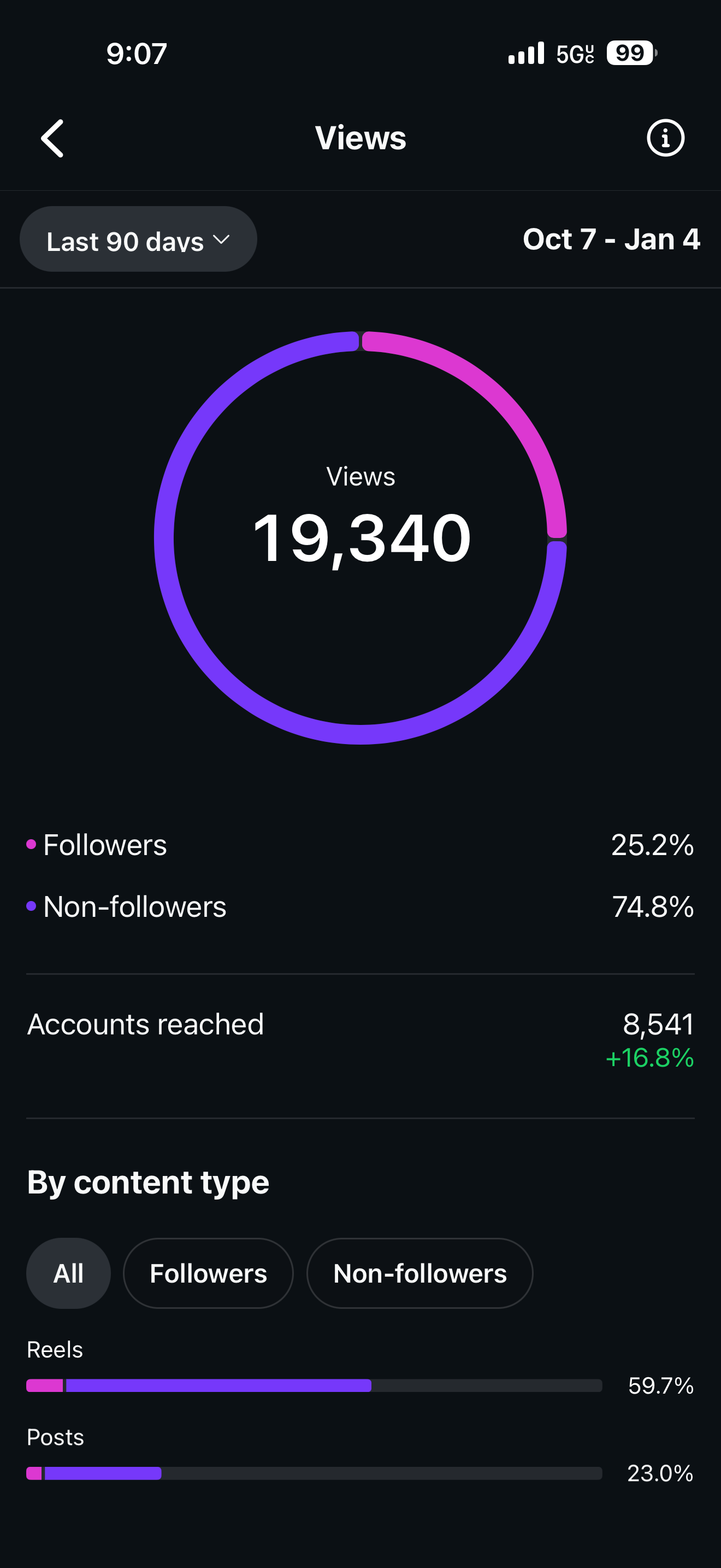 As of 1/2026, I currently have 1,180 followers on Instagram and I have over 1K post. Based off of my analytics my Professional Dashboard shows 7.8K views in the last 30 days. I am very consistent and post content regularly on all my social media platforms. My following is larger on Instagram because I have been posting content here the longest.